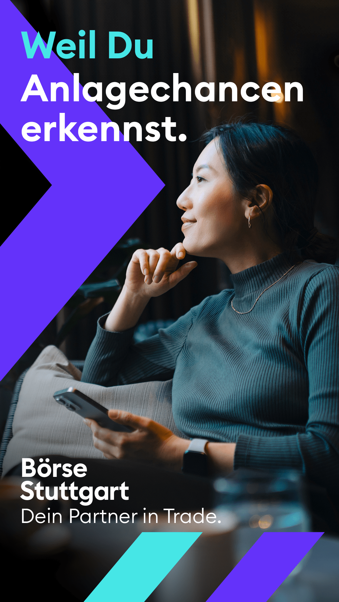 Für die Börse Stuttgart wurden Anzeigen in verschiedenen Formaten erstellt. Die Kampagne zielte darauf ab, sich als Partner im Trading zu etablieren und dies verständlich und gleichzeitig aufmerksamkeitsstark zu kommunizieren.